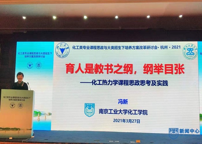 近日,全国“化工类专业课程思政与大类招生下培养方案改革研讨会”在杭州成功举办,本次研讨会由教育部高等学校化工类专业教学指导委员会、浙江大学和浙江工业大学举办,来自全国80余所高校的近300位专家、学者参加会议。公司国家首批一流课程负责人、“感动江苏教育人物—2018最美高校教师”冯新教授作题为《育人是教书之纲,纲举目张——化工热力学课程思政思考及实践》的大会报告。